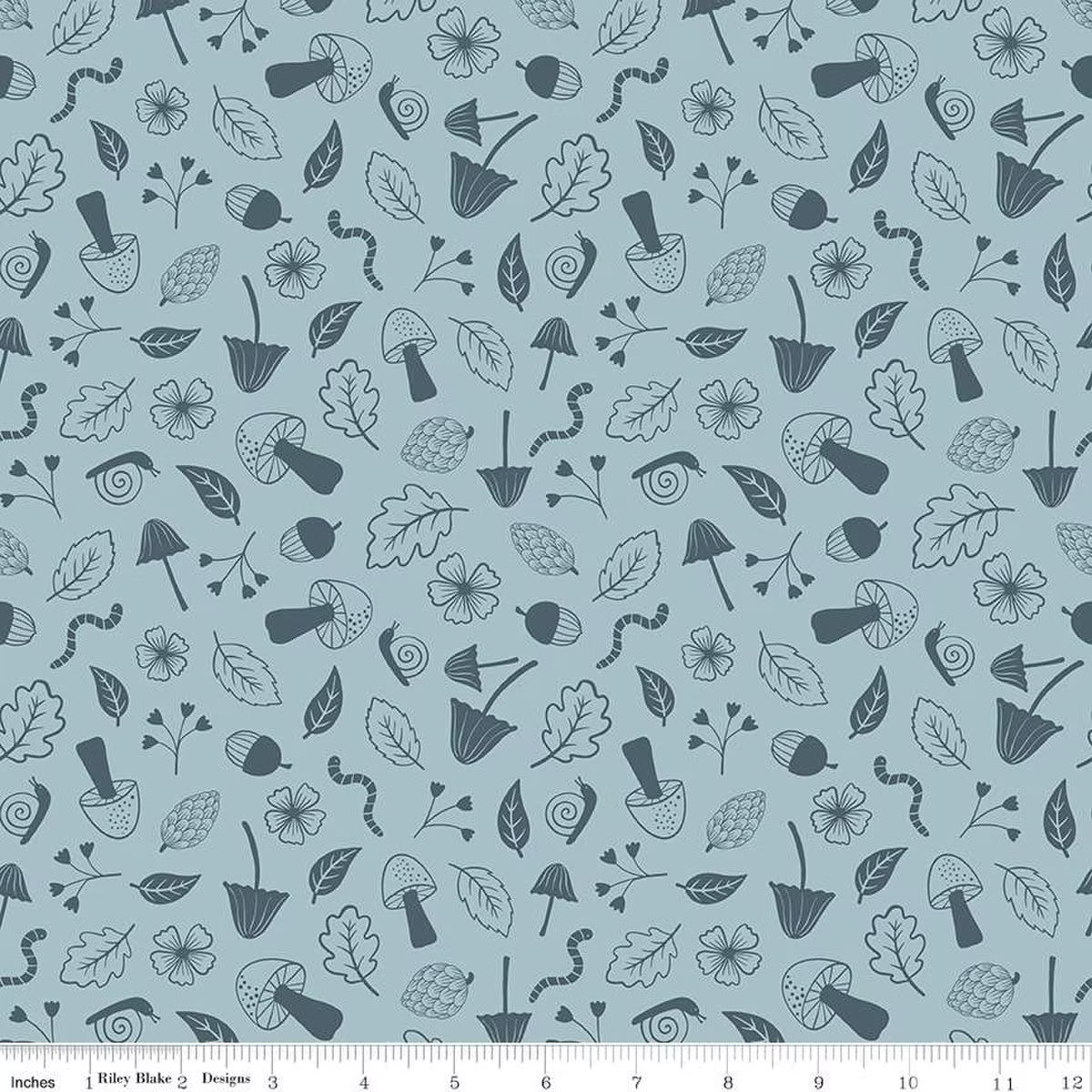 Forest Village by Sandra Nygård-Parthoens of Little Forest Atelier for Riley Blake Designs is great for quilting, apparel and home decor. This print features tone-on-tone mushrooms, snails, leaves, and more.